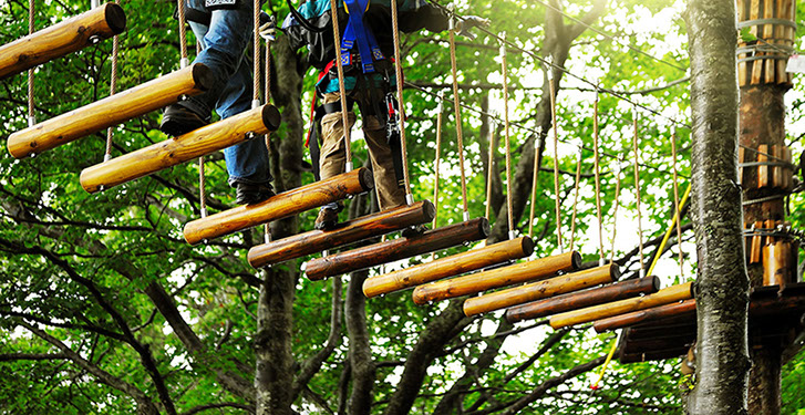 Dans cette belle chênaie aux formes étranges, découvrez dans les arbres 11 parcours de difficulté croissante. Pour les plus petits accompagnés des parents, jusqu’aux plus intrépides avides de sensations fortes…